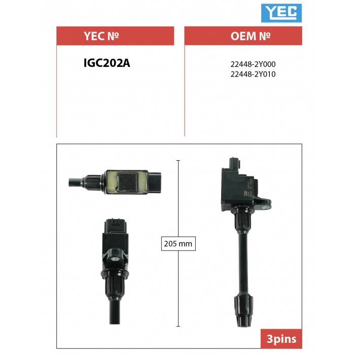 Катушка зажигания /задняя YEC для Nissan Cefiro A33 1998-2002 Maxima CA33 2000- VQ20DE; IGC202A; (TG-22448-2Y000 EXM2841) 224482Y010 224482Y001